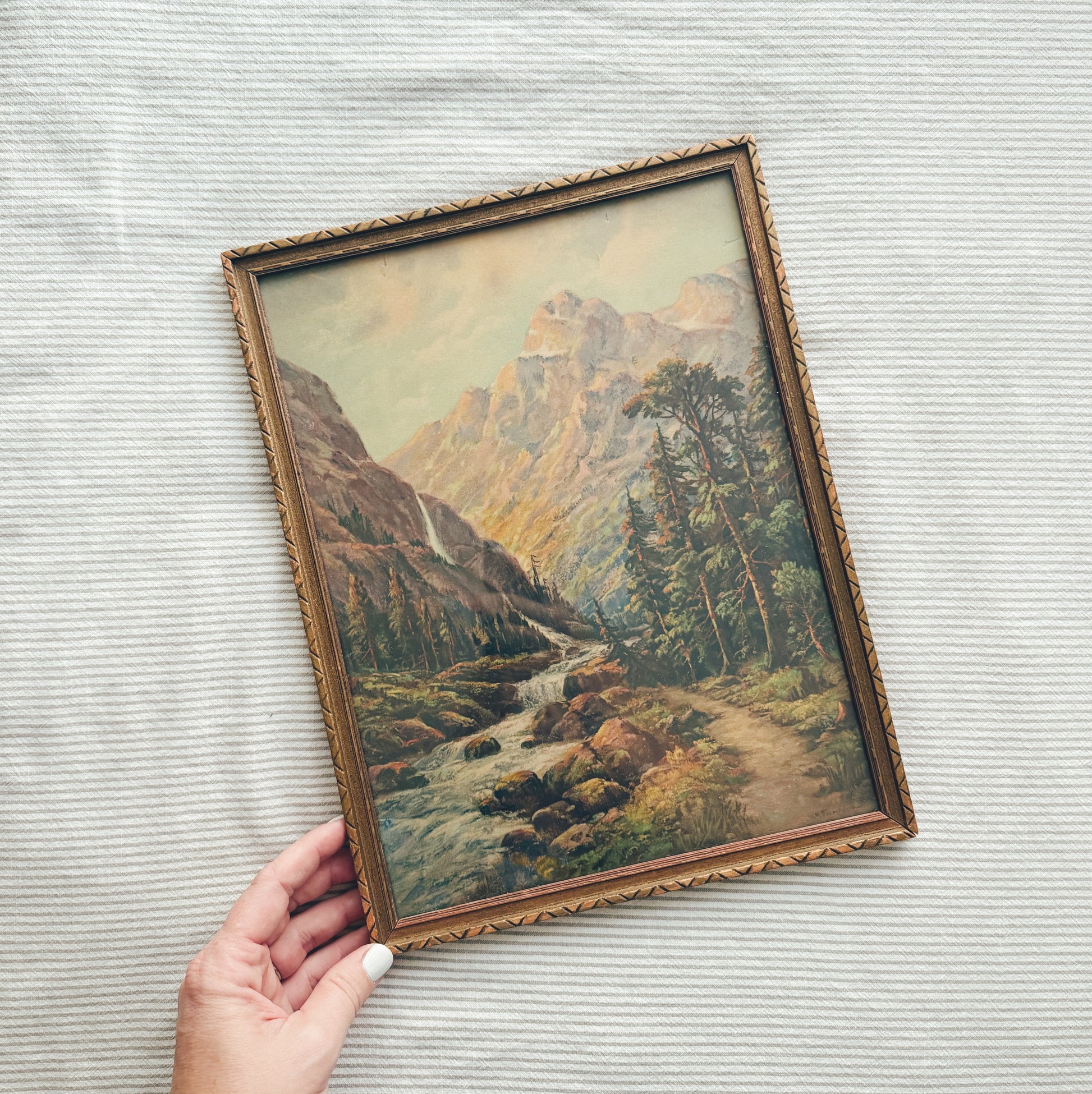 This art is so gorgeous!! The colors are stunning, the landscape beautiful and the frame is truly old and so special. In excellent condition.
