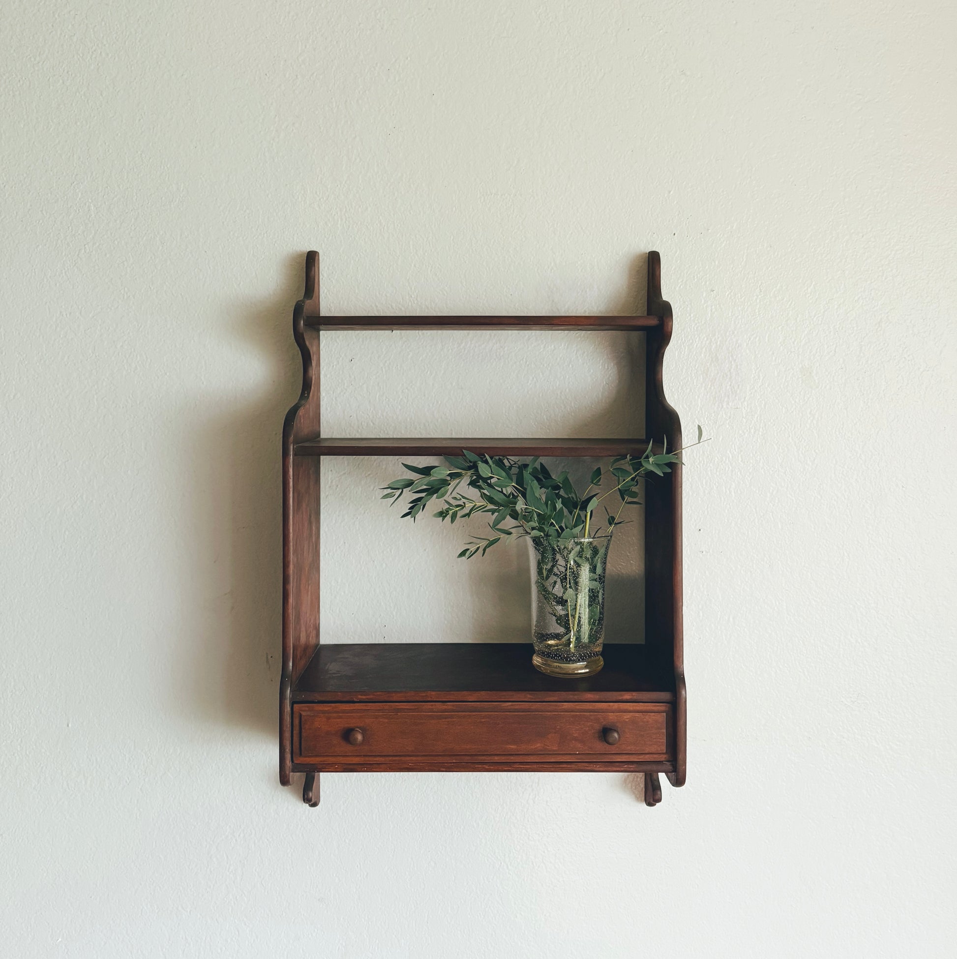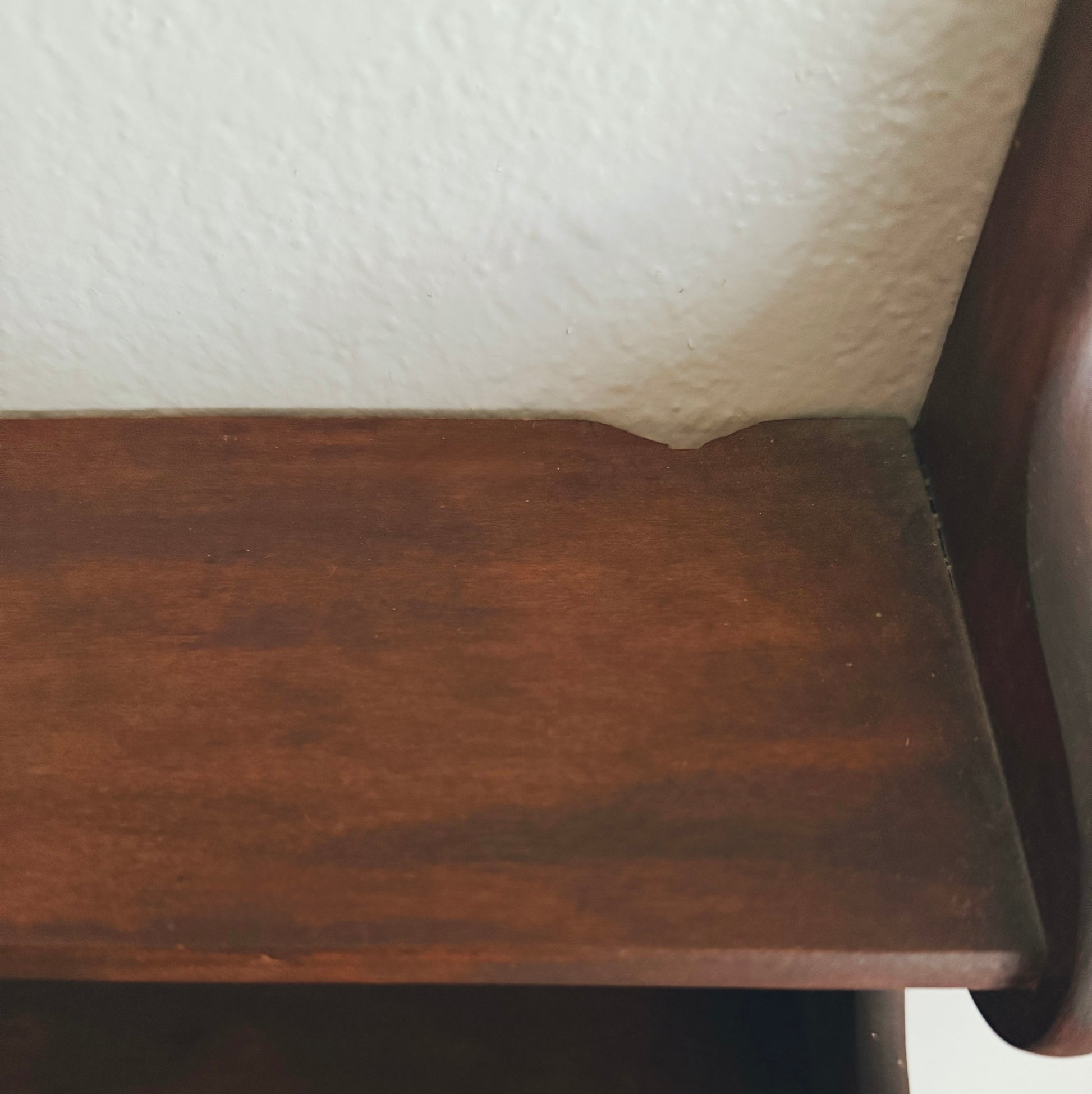 This dark shelf is stunning. It seems truly old. It does have one chip on the back of the top shelf as seen in pictures.